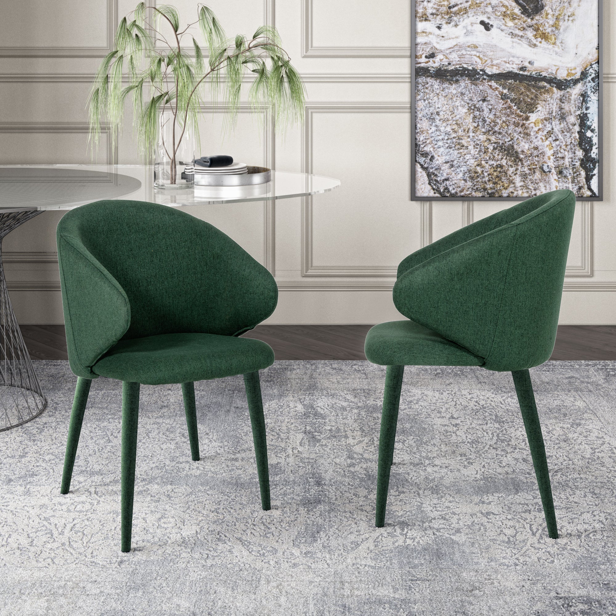 The classic silhouette of the MAICOSY Dining Chair is just what you've been looking for. The green linen fabric wraps the entirety of the frame, fully encompassing contemporary beauty. High wing style arm rests seamlessly meld with the curvilinear back. Fully upholstered legs finish this lovely item. Features: Upholstered covered green linen fabric covered back and seat. Green linen fabric covered legs. Wingback. Weight Capacity: 300 lbs. Floor Protection: Plastic Glides. Some Assembly Required. Dimensions: Overall: H32" x W21.7" x D22.8" Seat: H19.3" x W18.5" x D17.9" Arm Height: 25.2" Arm Width: 21.7" Weight: 16.3 lbs