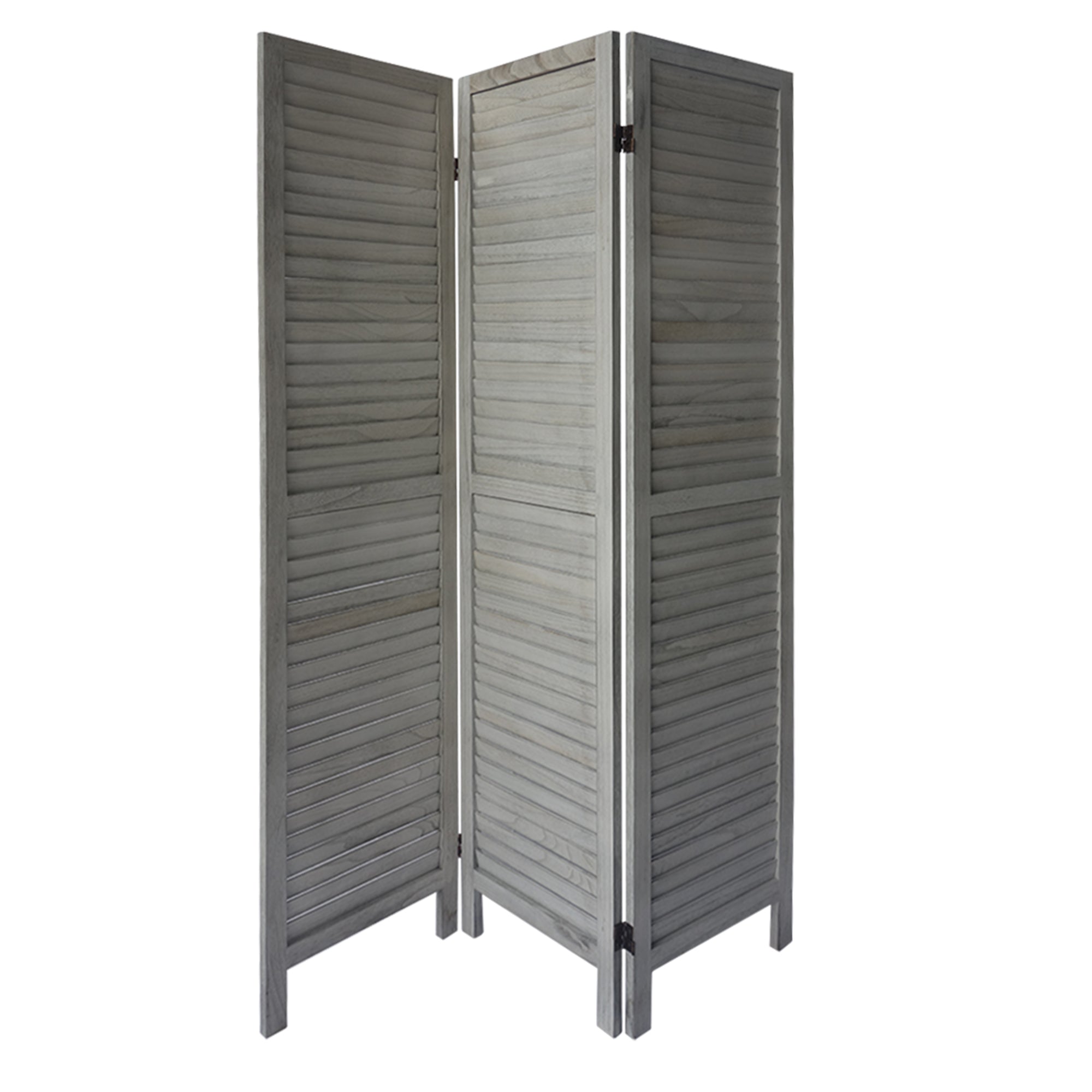 Bring home a gorgeous mix of style and function with this exquisitely crafted three panel divder screen, inspired by classic farmhouse stylings. Whether you want to add some privacy to your home, hide cluttered space, or provide refined aesthetics to your interior, this screen is perfect for a variety of functions. Crafted sturdily from a paulownia wood for prolonged durability, it is accented with a distressed gray finish, adding a rustic touch to the piece. Incorporated with metal hinges to facilitate smooth folding and transportation, this partition screen showcases a plank style design on each panels.