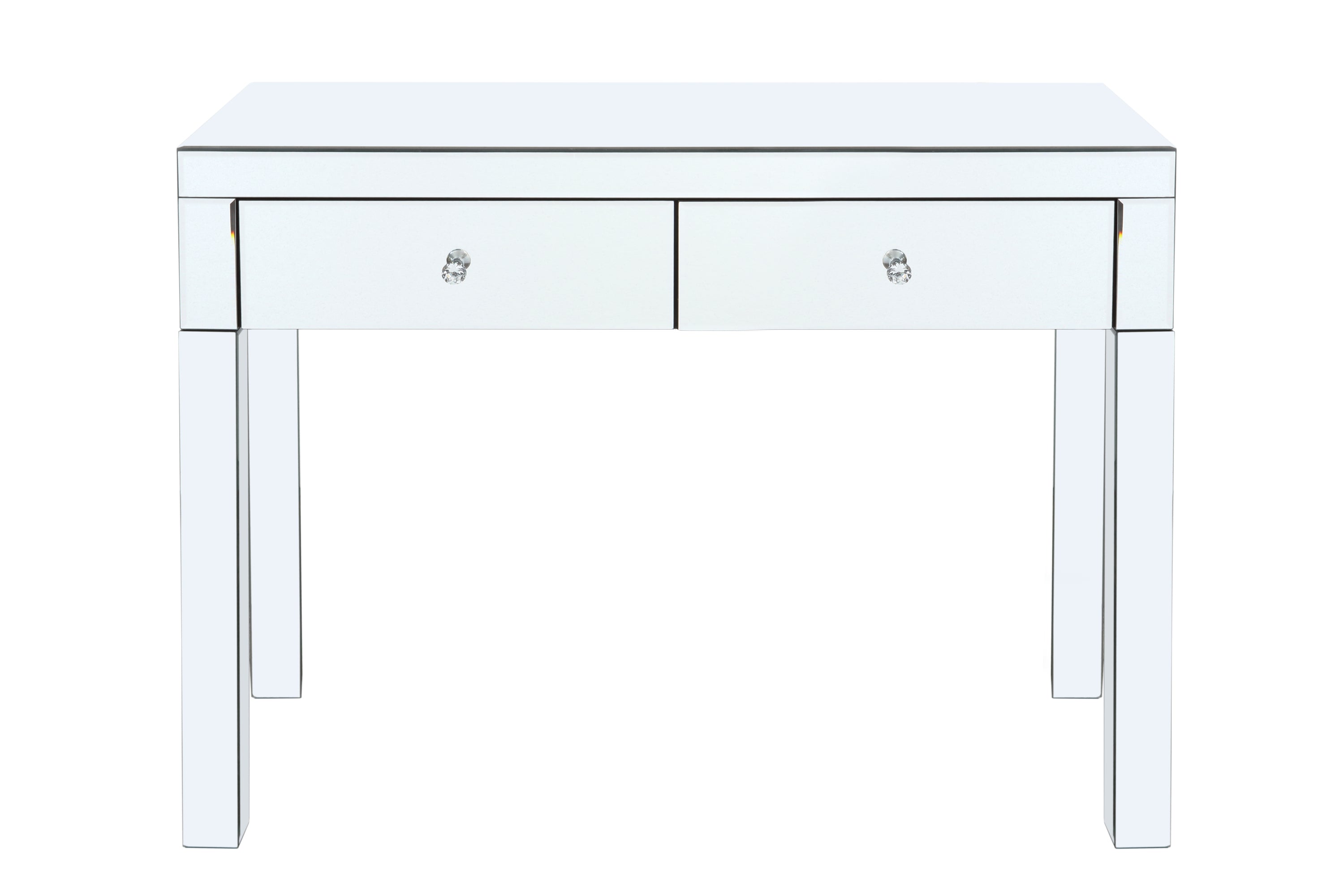 This home office desk has a spacious desktop and 16.8 inch x 15.7 inch deep drawers, allowing you to enjoy ample work space. It can easily accommodate your files, books, iPad, or MacBook. This computer desk has a compact design and is very suitable for use in small spaces Enhance your workspace with the modern charm of this mirrored writing desk.