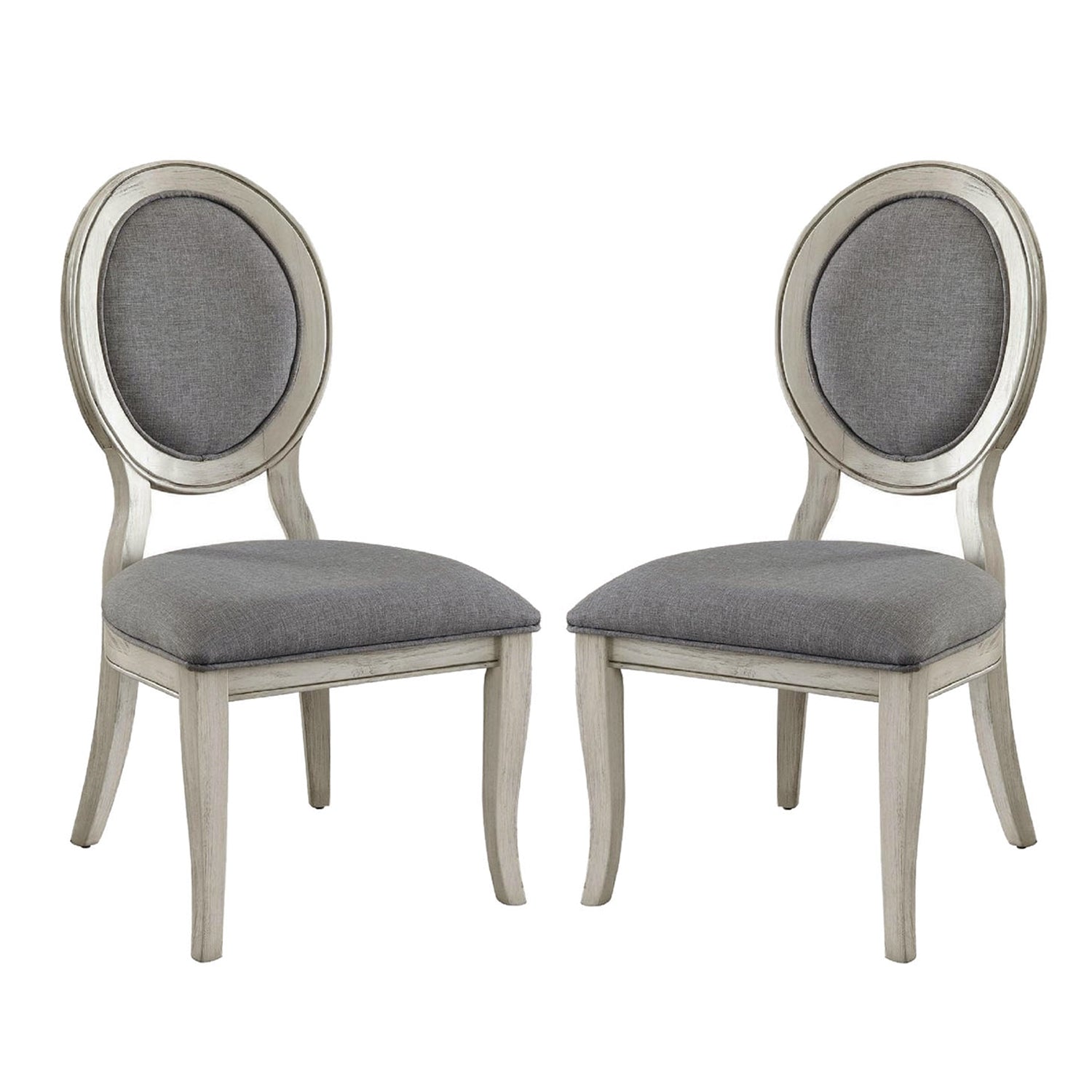 The oval shape back design chair feature gray fabric seat cushions which can provide the comfort you desire. This chair showcases a stunning appearance and eye catching design. Sold in a convenient set of two.