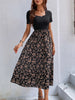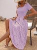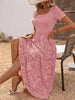 Embrace effortless elegance with this charming maxi dress featuring a beautiful floral print on a soft pink background. The dress combines a ribbed, form-fitting short-sleeve bodice with a scoop neckline that transitions gracefully into a flowing midi-length skirt. The gathered waistline creates a flattering silhouette while the delicate white floral pattern adds a romantic touch perfect for any spring or summer occasion. This versatile piece can be dressed up with heels for special events or paired with sandals for casual outings. The comfortable stretch fabric in the bodice ensures all-day comfort, while the airy skirt provides easy movement. Accessorize with your favorite jewelry and a woven bag to complete this feminine, seasonal look. The dress's thoughtful design makes it an ideal choice for garden parties, brunches, or any occasion that calls for both style and comfort.