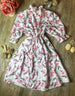 Embrace the romance of spring and summer with this charming babydoll dress featuring a delightful pink floral print against a crisp white background. The mock neckline adds a sophisticated touch, while the 3/4 puff sleeves with frilled trim create a feminine silhouette. The dress's swing tunic design flows gracefully into a flared mini length, perfect for both casual outings and special occasions. The gathered waistline and loose-fitting style ensure comfort without compromising on style. The all-over floral pattern showcases delicate pink blooms with olive green leaves, creating a fresh, garden-inspired look. This versatile piece can be dressed up with heels for events or paired with sandals for a more relaxed ensemble. The lightweight fabric makes it an ideal choice for warm weather, while the modest length and playful design strike the perfect balance between sweet and sophisticated.
