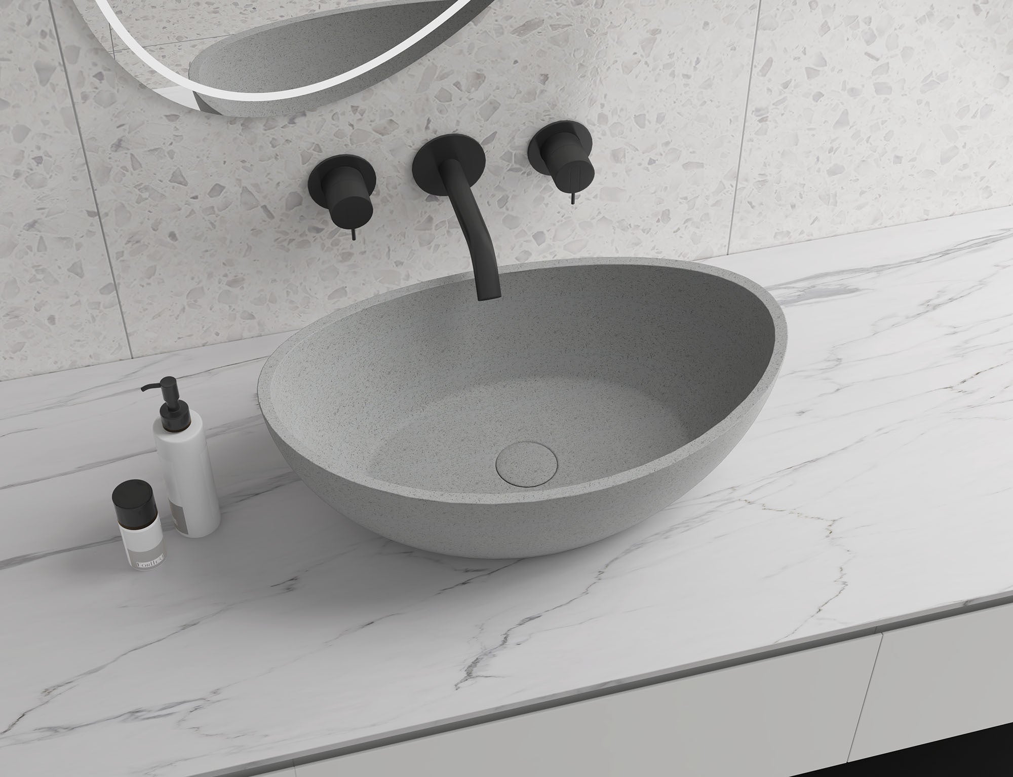 With contrasting textures, The Oval Concrete Vessel Bathroom Sink Set by Dasen provides a sense of calm for any bath space. Dasen’s proprietary Concrete Stone brings natural elements to the bathroom. The sink’s all-natural concrete composite is handcrafted and designed to withstand a lifetime of daily use providing unparalleled durability.