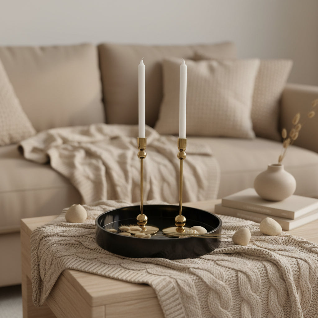 Elevate your table settings with this sophisticated pair of metal candle holders, each standing at an impressive 12 inches tall. Crafted with precision, these holders accommodate standard pillar candles and serve as striking focal points for dining tables, mantels, or entryways. The sleek metal construction ensures durability while maintaining an elegant aesthetic that complements both modern and traditional décor. Perfect for creating ambient lighting during intimate gatherings or adding refined style to everyday spaces. This versatile set brings timeless sophistication to any room.