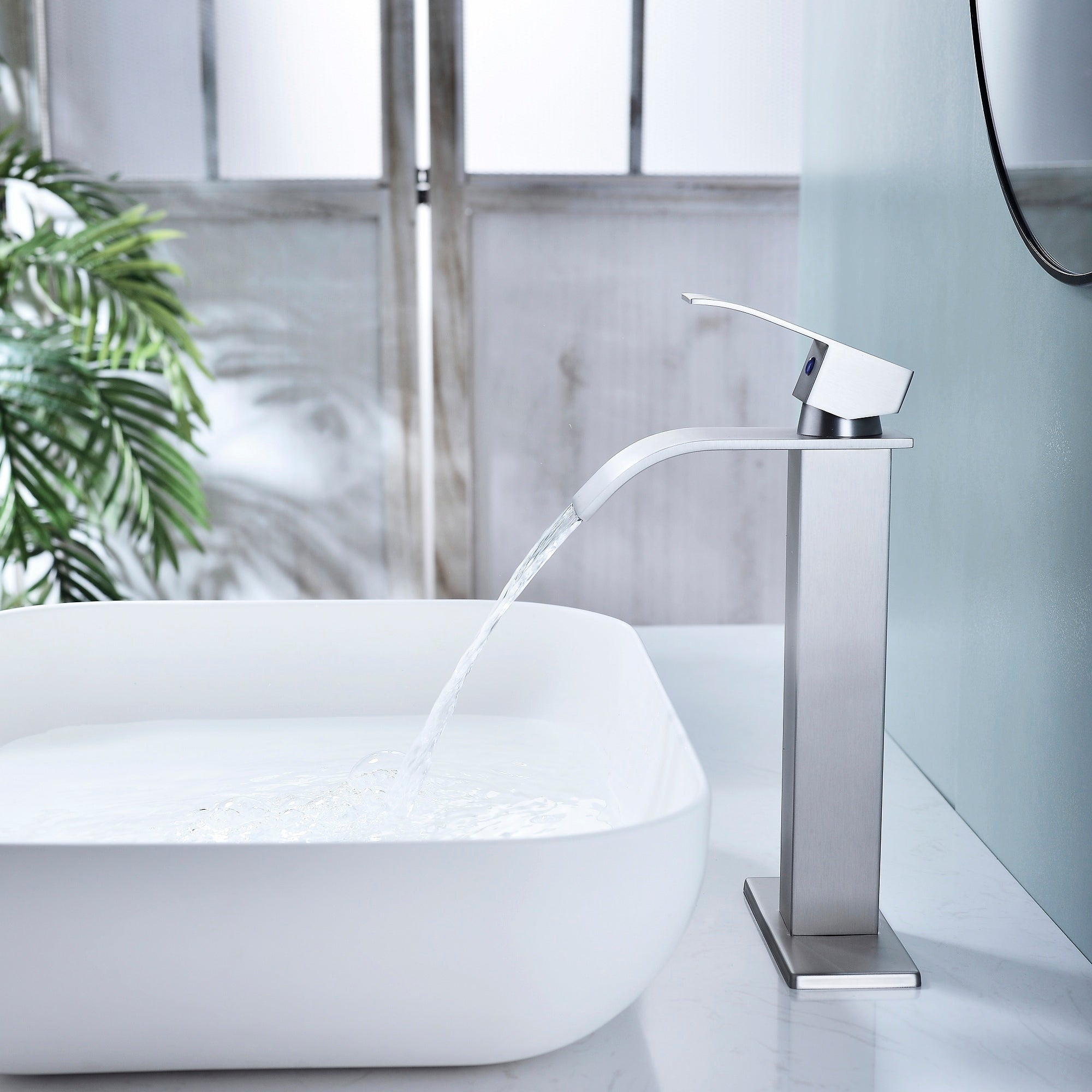 【WATERFALL DESIGN】The ultra-wide waterfall spout design makes large water flow. It provides a clear, powerful and beautiful laminar stream. Simple design suit for any style of the house.
