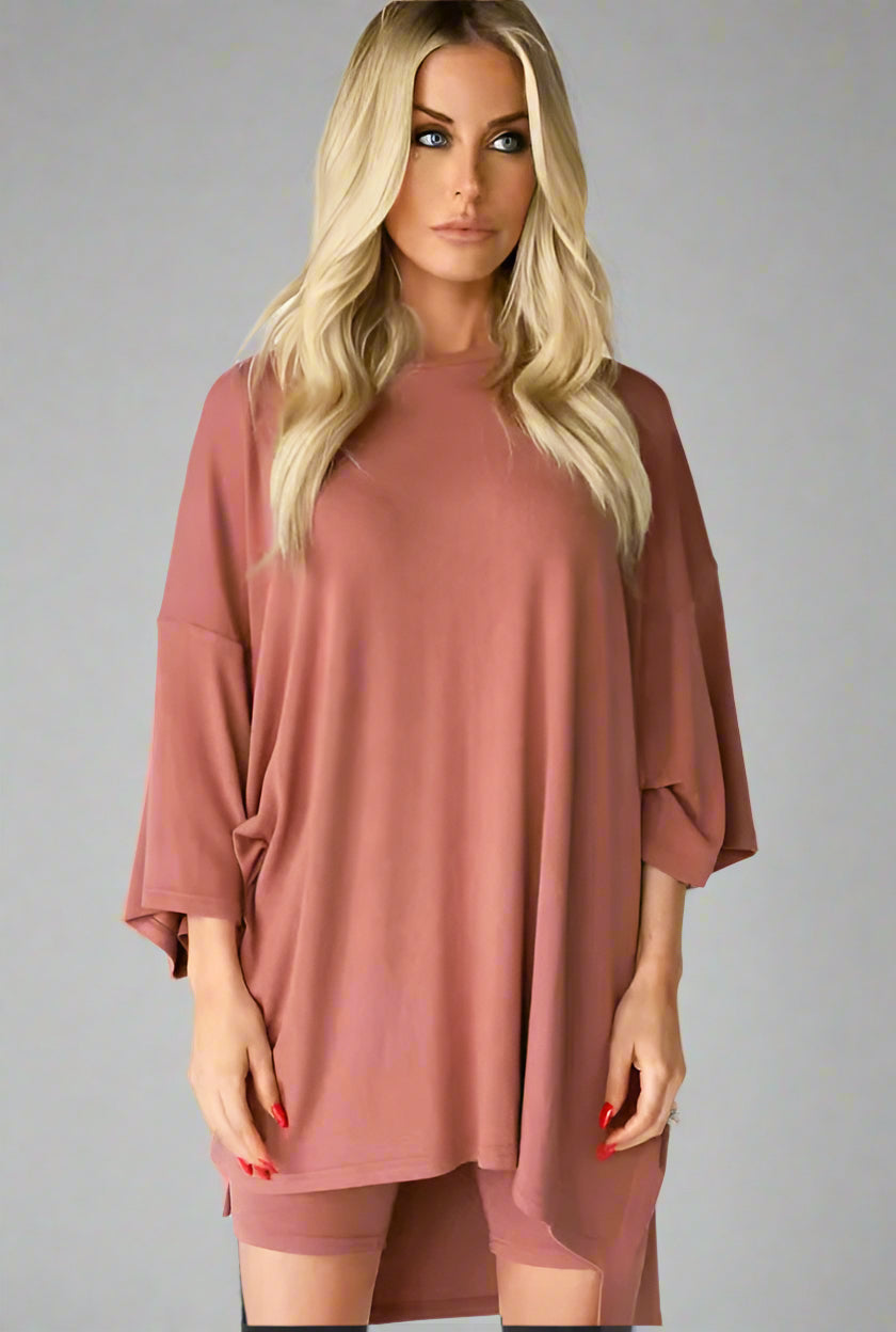 Elevate your casual wardrobe with this stylish and comfortable two-piece loungewear set. The ensemble features a relaxed-fit T-shirt with three-quarter length sleeves that drapes beautifully for an effortlessly chic look. Paired with figure-flattering shorts, this coordinated set strikes the perfect balance between style and comfort. The solid black color offers versatile styling options while maintaining a sleek, modern aesthetic. The loose-fitting top provides unrestricted movement, while the shorts offer a more fitted silhouette to create a balanced proportion. Perfect for lounging at home, running errands, or casual outings when paired with your favorite accessories. The MAICOSY set is crafted to provide all-day comfort without sacrificing style. The versatile design allows for mix-and-match styling with other wardrobe pieces, making it a practical addition to any casual clothing collection. Available in various sizes, this set is designed to flatter different body types while maintaining its sophisticated appeal.