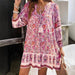 Upgrade your wardrobe with this stunning V-neck floral print dress , designed for women who love timeless elegance with a playful twist . The delicate fringe bow detail at the neckline adds a touch of charm, while the all-over floral print brings vibrant energy to your look. Perfect for spring and summer , this long-sleeve dress balances style and comfort effortlessly.