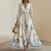 This stunning floral print maxi dress features a flattering V-neckline and graceful long sleeves, designed to bring out feminine charm for garden parties, vacations, and special occasions. The A-line silhouette with delicate gathers creates beautiful movement with every step.