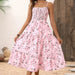 Step into summer elegance with this charming floral midi dress. The smocked bodice creates a flattering silhouette while providing comfortable stretch, perfectly complemented by delicate spaghetti straps. The tiered design flows gracefully to midi length, creating beautiful movement with every step. Crafted in a dreamy pink shade adorned with subtle floral prints in grey tones, this dress embodies casual sophistication. The lightweight fabric makes it ideal for warm weather occasions, from garden parties to beach outings. The versatile design features a feminine square neckline and a flowing tiered skirt that adds just the right amount of romance. Perfect for pairing with sandals and a sun hat for a complete summer look. This sleeveless dress combines style with comfort, making it a must-have addition to your warm-weather wardrobe. Ideal for various occasions, from casual daytime events to semi-formal gatherings.